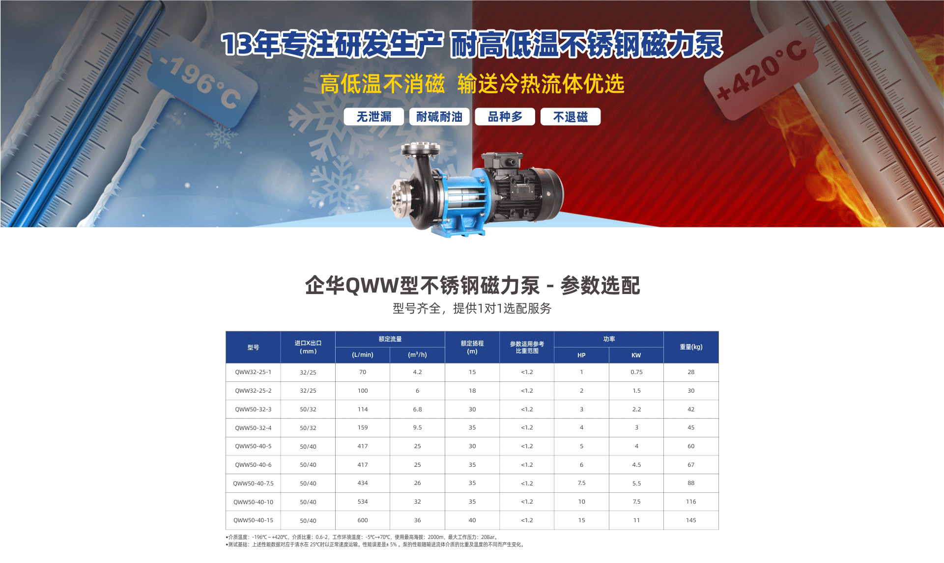 QWW耐高低溫不銹鋼磁力驅動大流量離心泵